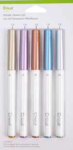 - Le kit de stylos métallisés Cricut Explore comprend cinq stylos dans les teintes or, argent, cuivre, bleu et violet