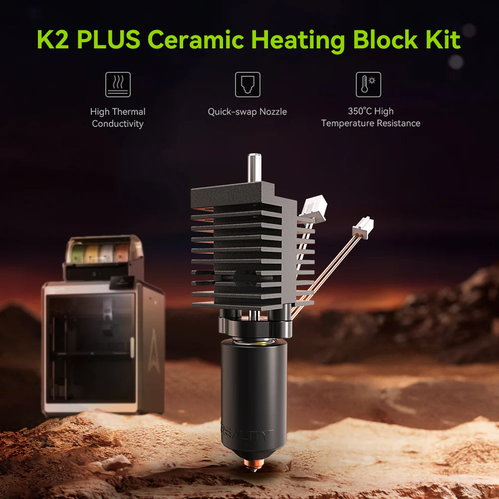 Résistant jusqu'à 350°C, ce bloc combine alliage de titane (limitant les pertes de chaleur) et buse en cuivre/acier trempé pour une compatibilité étendue : PLA, ABS, PETG, TPU, PC, matériaux chargés (PLA-CF, PA-CF…), etc.