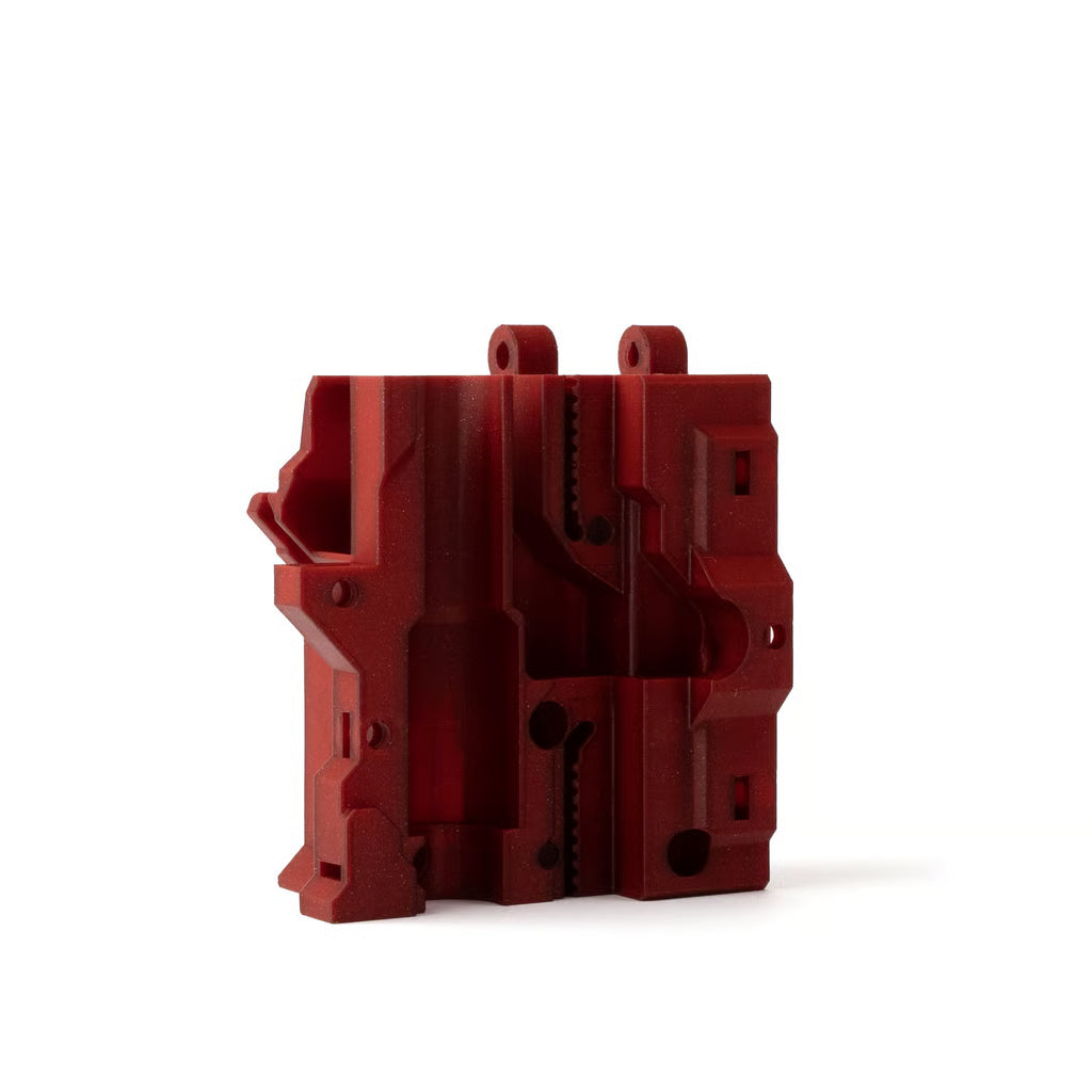 Le PETG est l'un des filaments les plus couramment utilisés. Sa solidité et sa durabilité en font un excellent choix pour imprimer diverses pièces soumises à des contraintes mécaniques, comme divers supports, ou pinces, par exemple. En raison de son excellente adhérence couche à couche, les impressions en PETG sont idéales pour les applications imperméables intérieures et extérieures. De plus, le PETG est un matériau résistant offrant une bonne résistance aux températures élevées. Le G dans l’acronyme représente une substance modifiée par du glycol présente lors du processus de fabrication. Elle modifie les propriétés du PET, afin qu'il soit plus facile à imprimer, moins cassant et plus clair lors de l'impression avec des variantes semi-transparentes. Le PETG a une faible dilatation thermique, donc même lorsque vous imprimez de grands objets, et sans une enceinte, il est rare qu'ils se décollent ou se déforment. En plus de cela, Le PETG est plus résistant et moins cassant que le PLA. Il possède une bonne quantité de flexion qui peut empêcher les pièces de se briser sous la pression. Nous utilisons le PETG pour imprimer les pièces pour nos imprimantes !